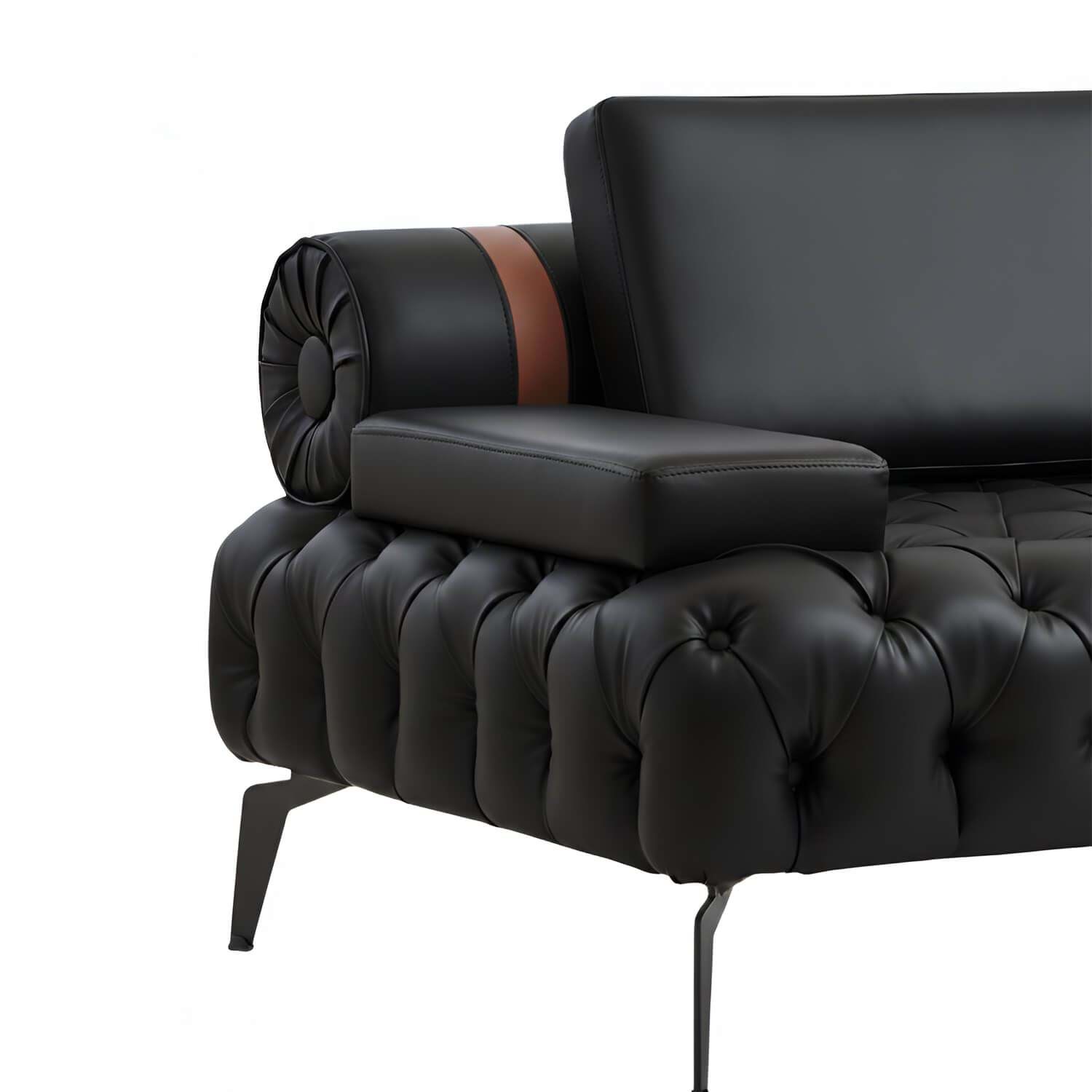 Üçlü ofis kanepesi sağlam iç iskelet yapısı ve metal ayakları ile dengeli bir duruş sağlar. Kapitone detaylı oturum bölümü, estetik görünümü desteklerken bekleme alanlarında profesyonel bir atmosfer oluşturur. Üçlü formu sayesinde aynı alanda daha fazla oturma imkânı sunar