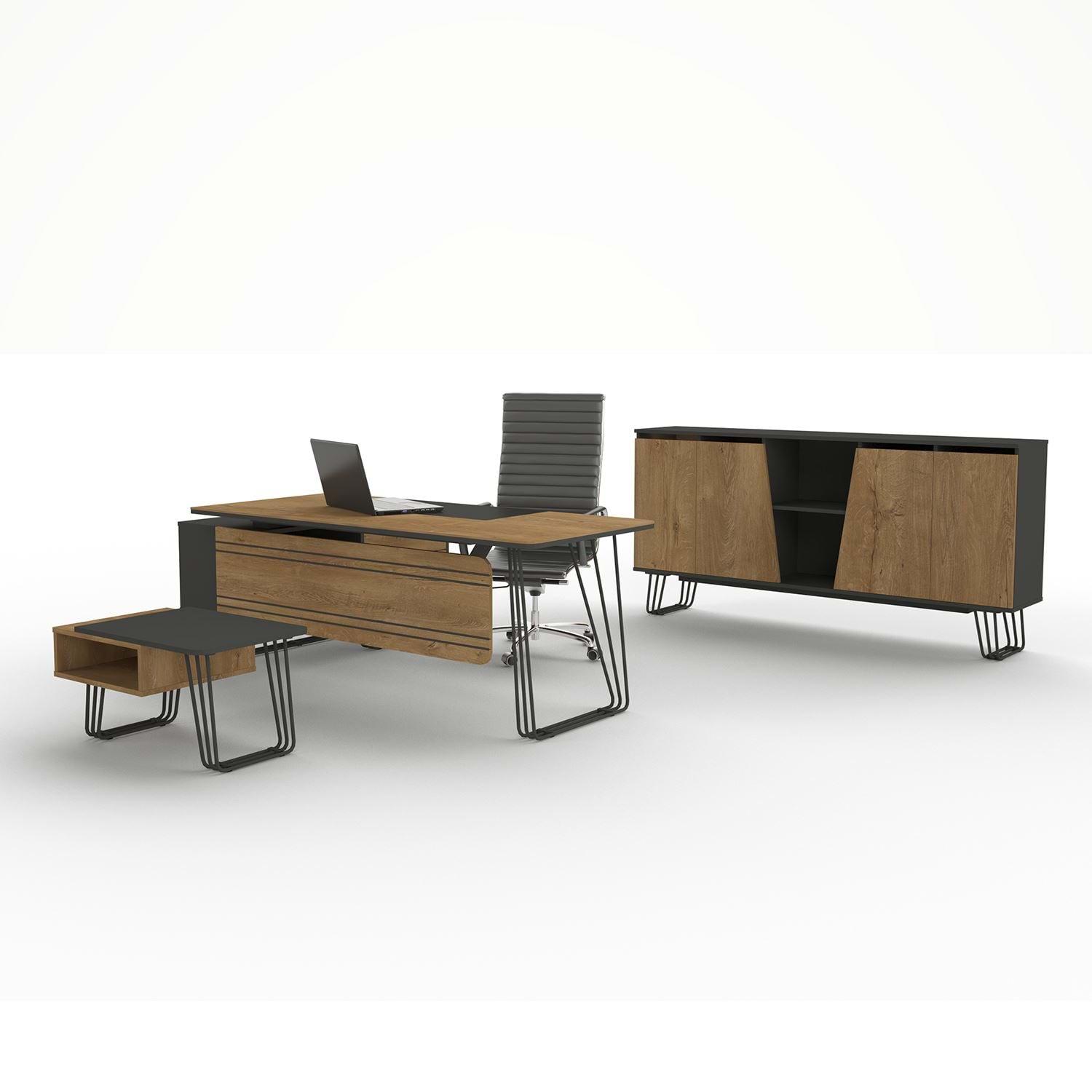 Bu yönetici takımı, ergonomik tasarımı ve yüksek kaliteli malzemeleriyle hem uzun ömürlü hem de konforlu bir kullanım sağlar. Ofis mobilyası ve yönetici takımı arayanlar için prestijli ve profesyonel bir tercih olarak öne çıkar.